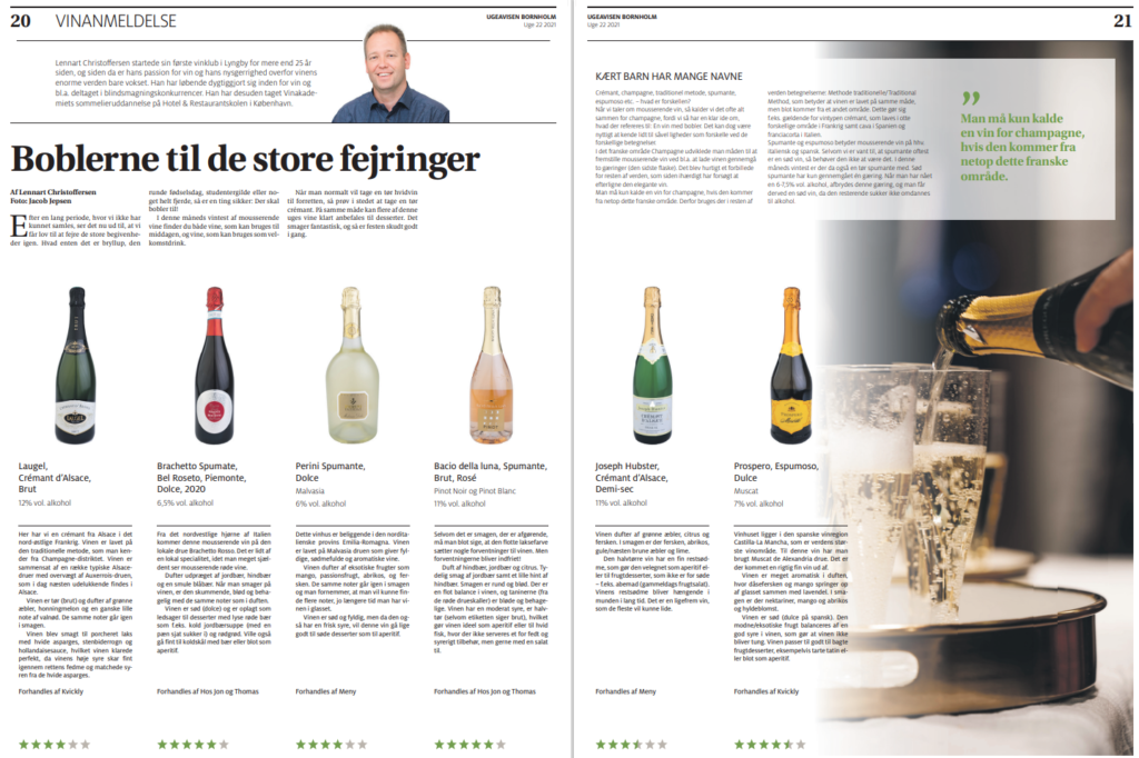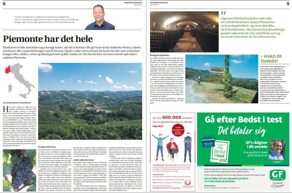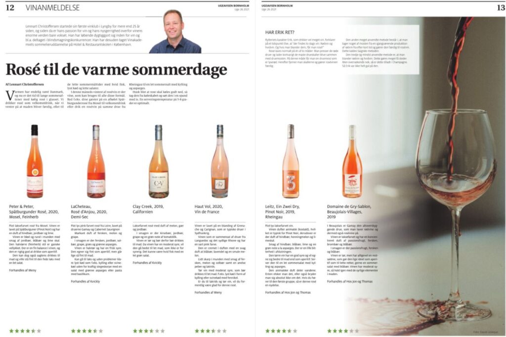 Nedenfor kan ses eksempler på vinanmeldelser og vinrejse beskrivelse lavet af Lennart Christoffersen til Ugeavisen Bornholm.